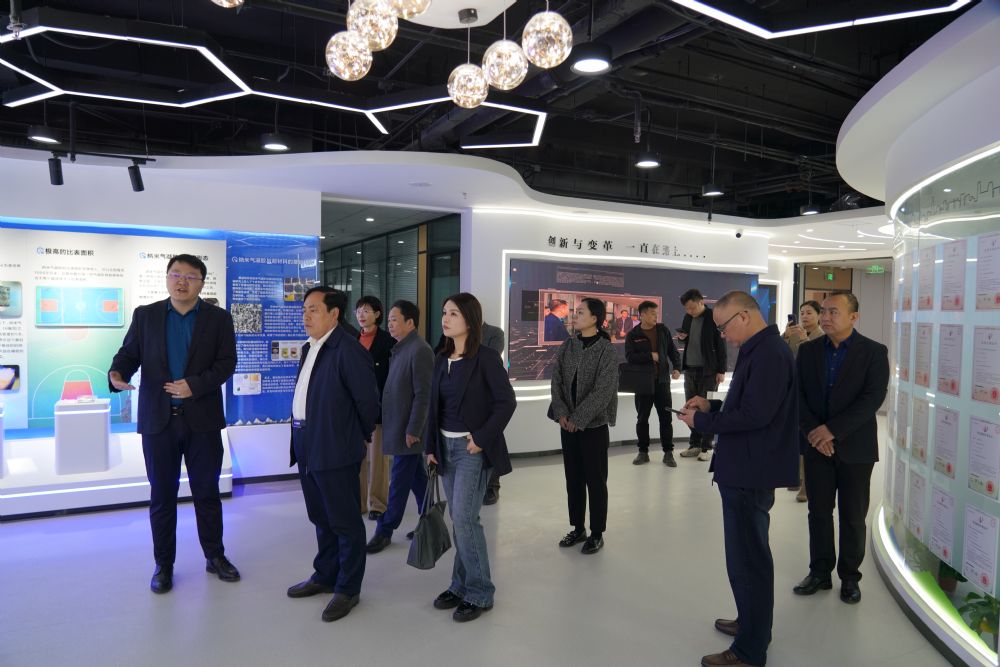 本次考察中,陳代陸副市長參觀了盟創納米公司展廳,詳細了解了公司產品性能及應用領域,并在產品物理性能展示區親自體驗了納米氣凝膠的神奇特性。